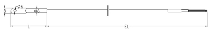 表示:YC6熱電偶,K型,不銹鋼網(wǎng)線2米,U型端子,圓孔直徑6mm