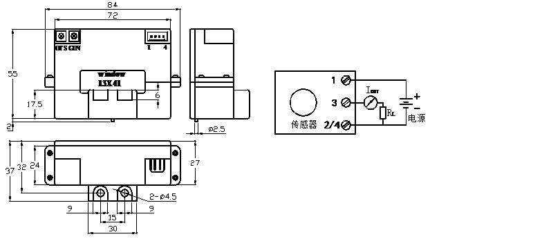 引腳輸出:1,+24V2,0V(電源地)3, IOUT4,0V(電源地)OFS,零點調(diào)節(jié)GIN,幅度調(diào)節(jié)