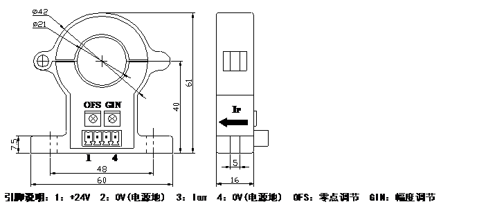 將0-600Adc交流電流信號變送輸出4-20mA信號,孔徑20.5mm,電源DC24V
