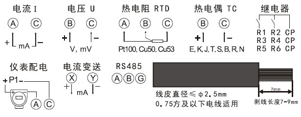 (熱電偶 K、S、B、T、E、J、N、R、WRE5-26、WRE3-25等 熱電阻 Pt100、Cu50、BA1、BA2、電阻400Ω)