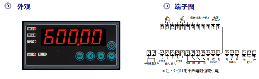 7、熱電偶冷端補償元件外置,最大限度提高冷端補償精度。