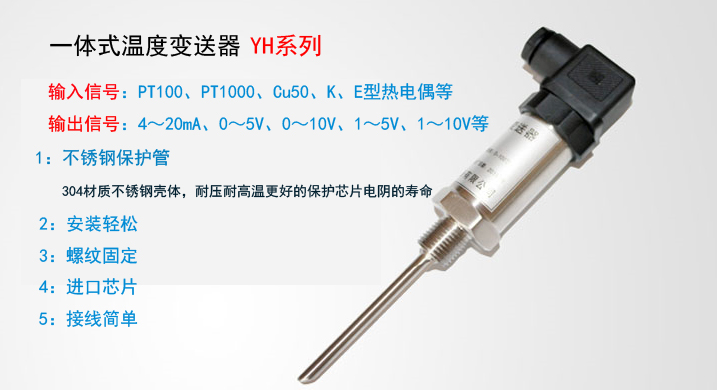 溫度變送器是將熱電阻信號或者熱電偶信號通過變送模塊轉換為標準的工業信號,如(4~20mA,0~5V,0~10V,1~5V,1~10V)等,其測溫溫度范圍與輸出信號呈線性關系,便以實現遠距離控制,測量精度相對比較高,在當今工業設備上已得到廣泛應用。
