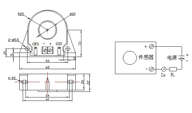 1、傳感器正確接線后,當被測電流從傳感器穿過,即可在輸出端測得相應的電流值。