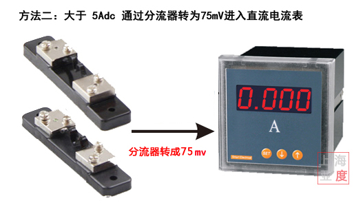 1、直流電流表輸入:電流:0-1Adc、0-5Adc ,輸入電流值大于5A可以加一個分流器轉成75mV進入直流電流表。